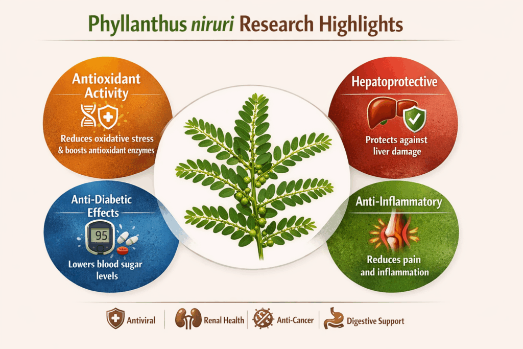 Phyllanthus niruri, commonly known as Bhumyamalaki or Bhui Amla, is one of the most respected liver-protective herbs in Ayurveda. It is widely used in the management of jaundice, hepatitis, fatty liver, splenomegaly, diabetes, urinary disorders, skin diseases, and inflammatory conditions.