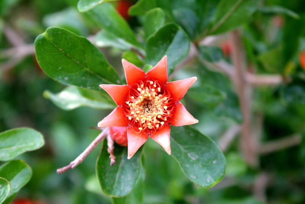 - Flowers: Solitary, red, numerous stamens, inferior ovary