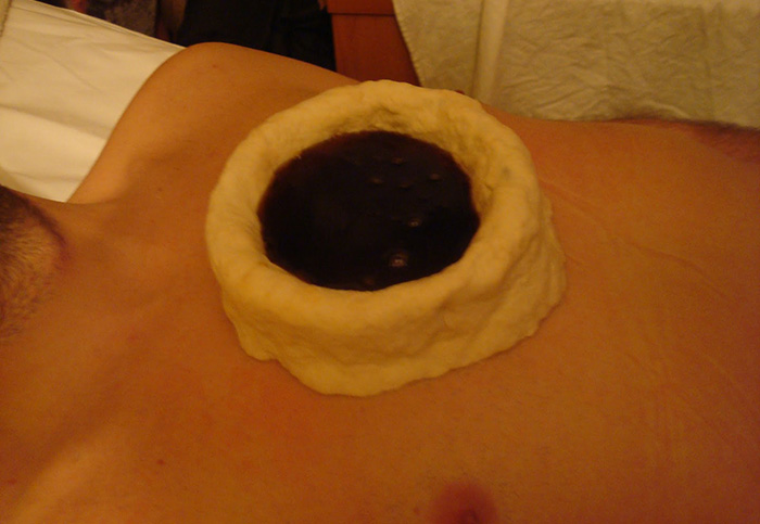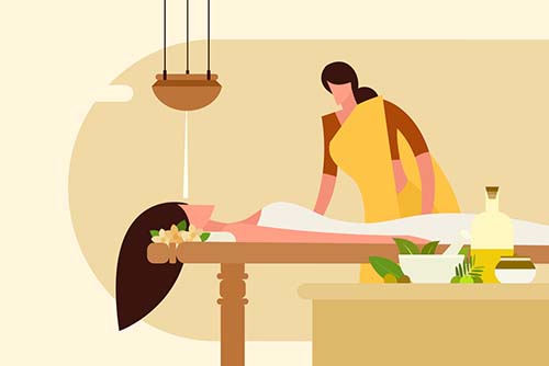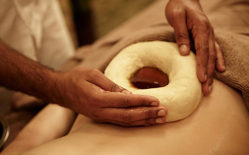 After cleaning and preparing the area for receiving treatment, the patient is made to settle in a comfortable position for the procedure. The body part is carefully massaged with warm herbal oil and medicated pastes, and covered with bandages or leaves. The medicine is left on the body for a long duration, 12 hours usually. It is then washed away with herbs and lukewarm water. The therapy must be continued for at least two to three days. This procedure aids in the treatment of inflammation-related issues like boils, abscess etc.