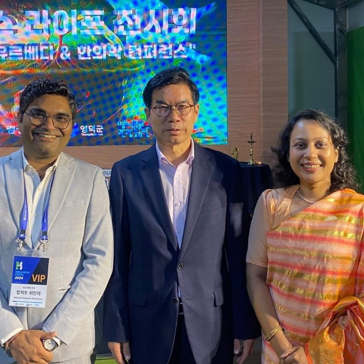 On October 5, 2024, Dr. Abhijeet Shirkande and Dr. Ankita Shirkande, accompanied by their group, attended the International H-Wellness Festa 2024 with the Mayor of Yeongdeok City. This significant event highlighted global wellness, where they shared their valuable insights on Ayurveda and its contribution to promoting holistic health.